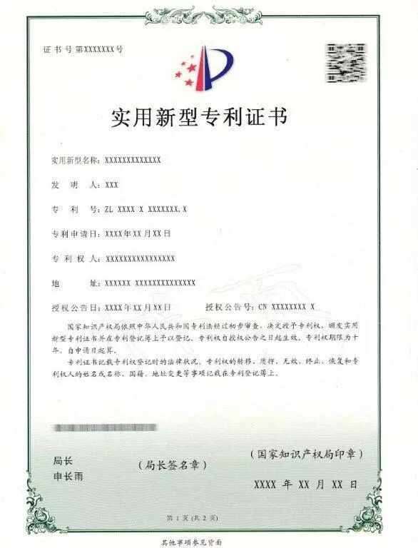 新版专利证书式样如下: