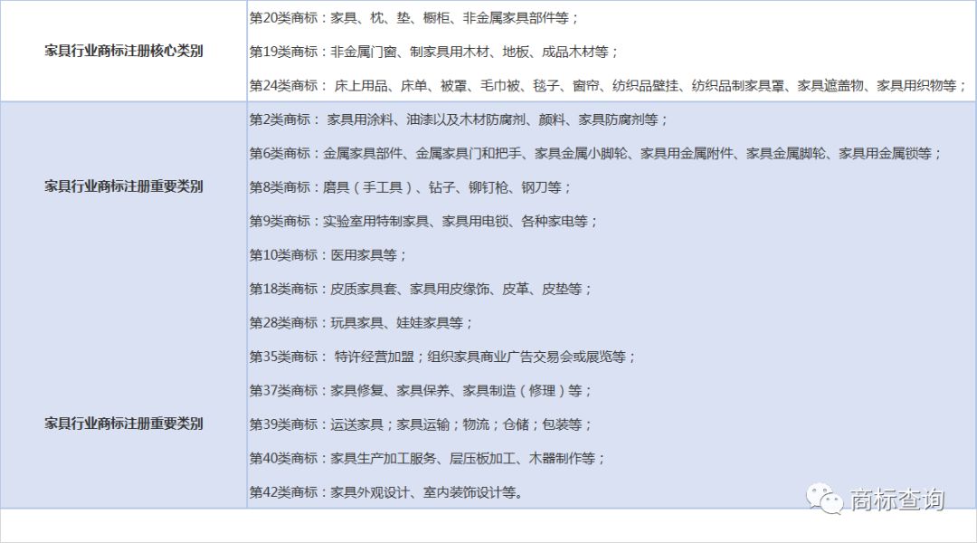 6、家具行业商标注册类别