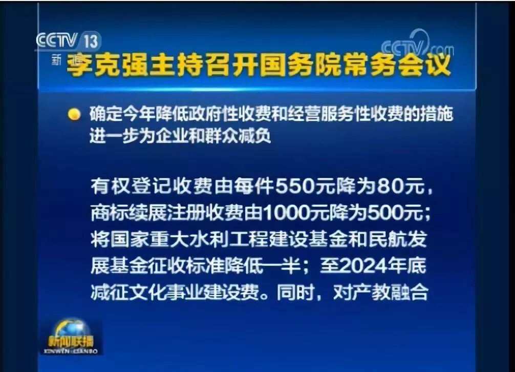 从7月1日起,减免不动产登记费,扩大减缴专利申请费、年费等的范围,降低因私普通护照等出入境证照、部分商标注册及电力、车联网等占用无线电频率收费标准,并要求必须有明显降费,比如车库、车位等不动产所有权登记收费标准由每件550元降为80元,商标续展注册费收费标准由1000元降为500元;