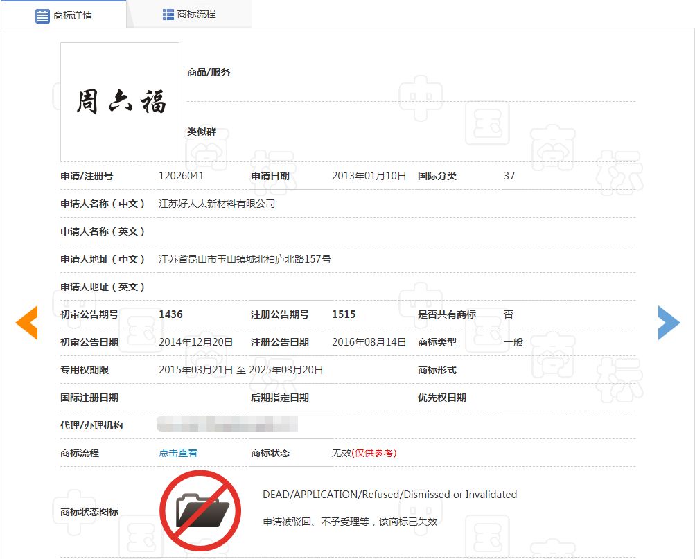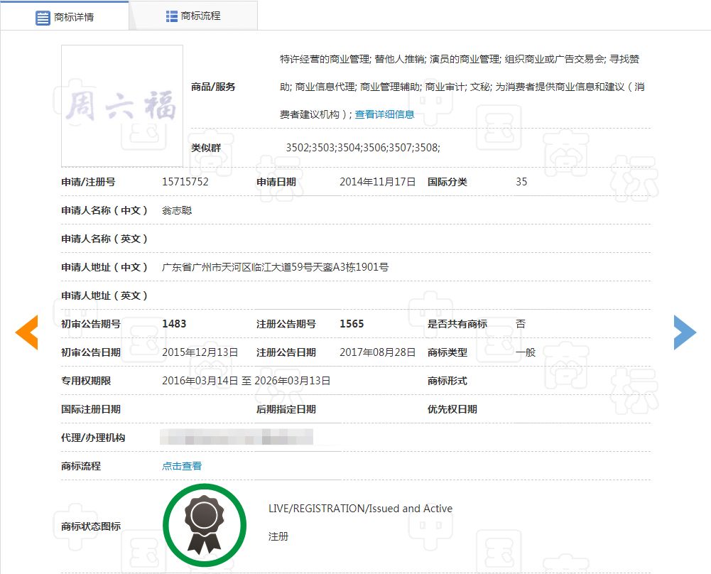 根据商标局数据,第15715752号“周六福”商标(即争议商标)由翁某于2014年11月17日提出申请注册,并于2016年3月14日获准注册,核定使用在演员的商业管理;商业审计;文秘等35类服务上。 2017年12月11日,申请人周六福珠宝有限公司对称争议商标提出无效宣告请求。 据了解,周六福珠宝有限公司请求依据《商标法》第九条、第十三条、第十四条、第三十条、第三十二条、第四十四条第一款的规定对争议商标予以无效宣告。 商标评审委员会认为,申请人商标“周六福”为整体无含义的词汇组合,商标本身具有一定独创性、显著性。争议商标与申请人商标的文字构成、排列顺序极为相近,难谓巧合。申请人提交的证据显示申请人为知名珠宝首饰品牌,其通过报刊杂志、电视、网络、户外等多种途径进行宣传和销售。 根据我委查明事实之三,除争议商标外,被申请人还先后申请注册了多件与他人知名品牌相同或相近的商标,且其对此亦无合理解释。故可以认定被申请人申请注册争议商标的行为具有明显的复制、抄袭及摹仿他人知名商标的故意。该类抢注行为扰乱了正常的商标注册管理秩序,并有损于公平竞争的市场秩序,损害了公共利益,已构成《商标法》第四十四条第一款所指以不正当手段取得商标注册的情形。 近日,商标评审委员会依照《商标法》第四十四条第一款、第三款和第四十六条的规定,对争议商标予以无效宣告。 对于商标评审委员会的裁定,翁某不服的话,仍可以在规定时间内提起行政诉讼。 另外,小编发现,周六福珠宝有限公司在商标品牌保护上并不是很完善。 关于“周六福”商标 经过检索,截止目前,与“周六福”有关的商标共有280件。 其中,周六福珠宝有限公司共申请注册了75件(有32件“周六福”商标是2018年05月24日才提出申请注册),其香港总部香港周六福珠宝国际集团有限公司申请了27件。 这意味着,其余的173件“周六福”相关商标由多家企业或者个人提出申请注册。目前,仍有多枚“周六福”相关商标处于注册状态,比如第5850780号35类,第13418532号7类,第8995757号11类“周六福”商标。 此前,周六福珠宝有限公司曾成功无效掉第12026041号37类“周六福”商标,想必周六福珠宝有限公司会继续采取相关措施,夺回其他“流落在外”的“周六福”商标。 事实上,多件“周六福”商标流落在外,有很大的原因是由于周六福珠宝有限公司当初没有选择全类别注册商标。 商标是品牌建设的基础,在45个类别上做好商标保护,一方面能防止自己的商标因为他人在其它类别注册了相同或近似商标而被淡化。一方面也可以防止在自己的品牌做大做强后,被别有用心的人“利用”,在自己主要经营的商品或服务以外的类别进行注册,搭便车、打擦边球,攀附自己辛苦创造的品牌价值。